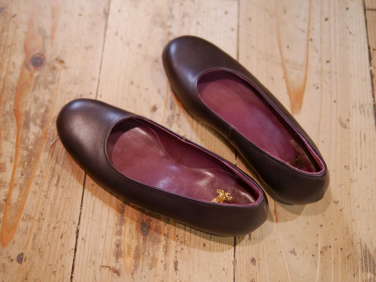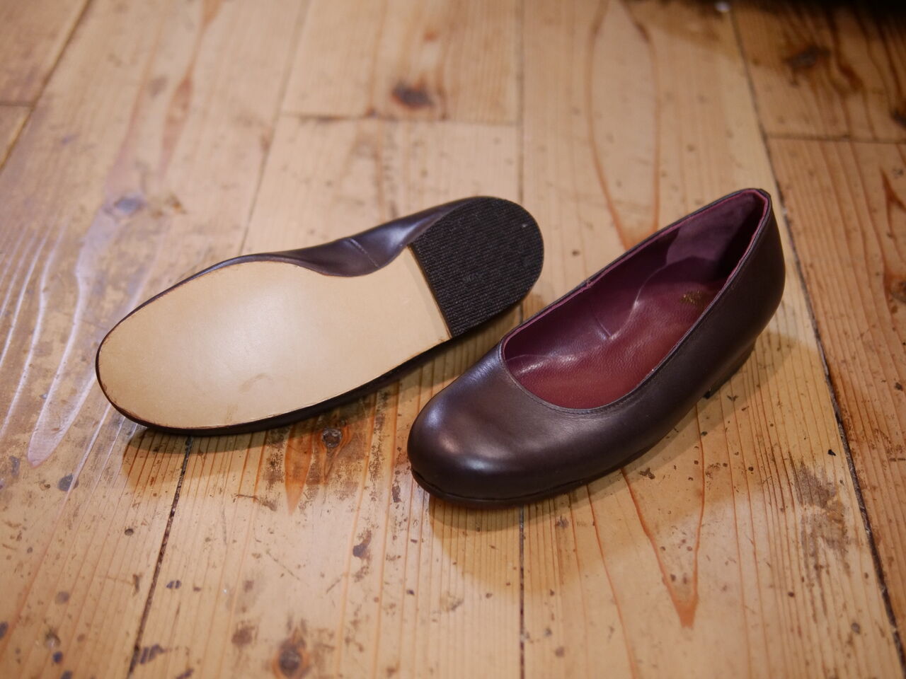2025年12月21日 フラットパンプス、完成! Fさんの新作、奥様のためのパンプス、第二弾の完成です。前回の問題点を修正してのリベンジ的作品ですが、今回はうまくいきました。ソールに5ミリほどのやや厚みのある革底を使用しましたので、曲がりにくさから踵が脱げやすくならないよう、底を貼る前に、予め曲げた状態をクセ付けしてから貼るなどの、工夫の甲斐があったと言うものです。 タグ :#生徒作品#フラットパンプス