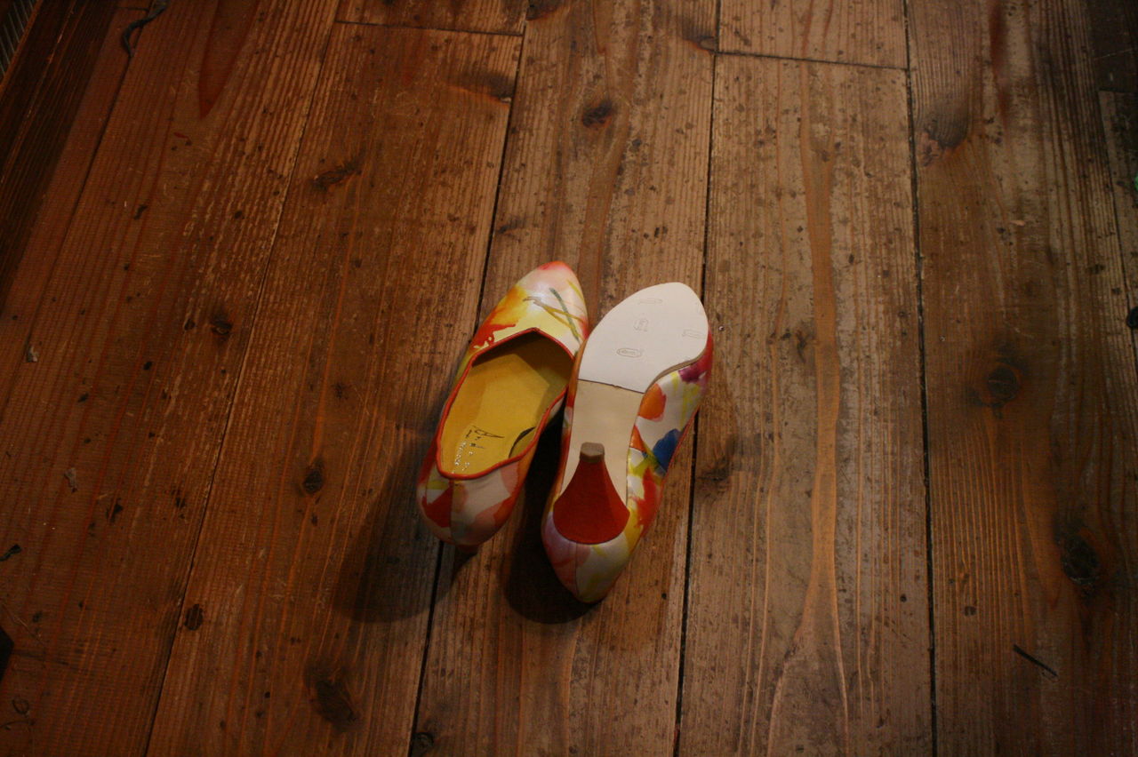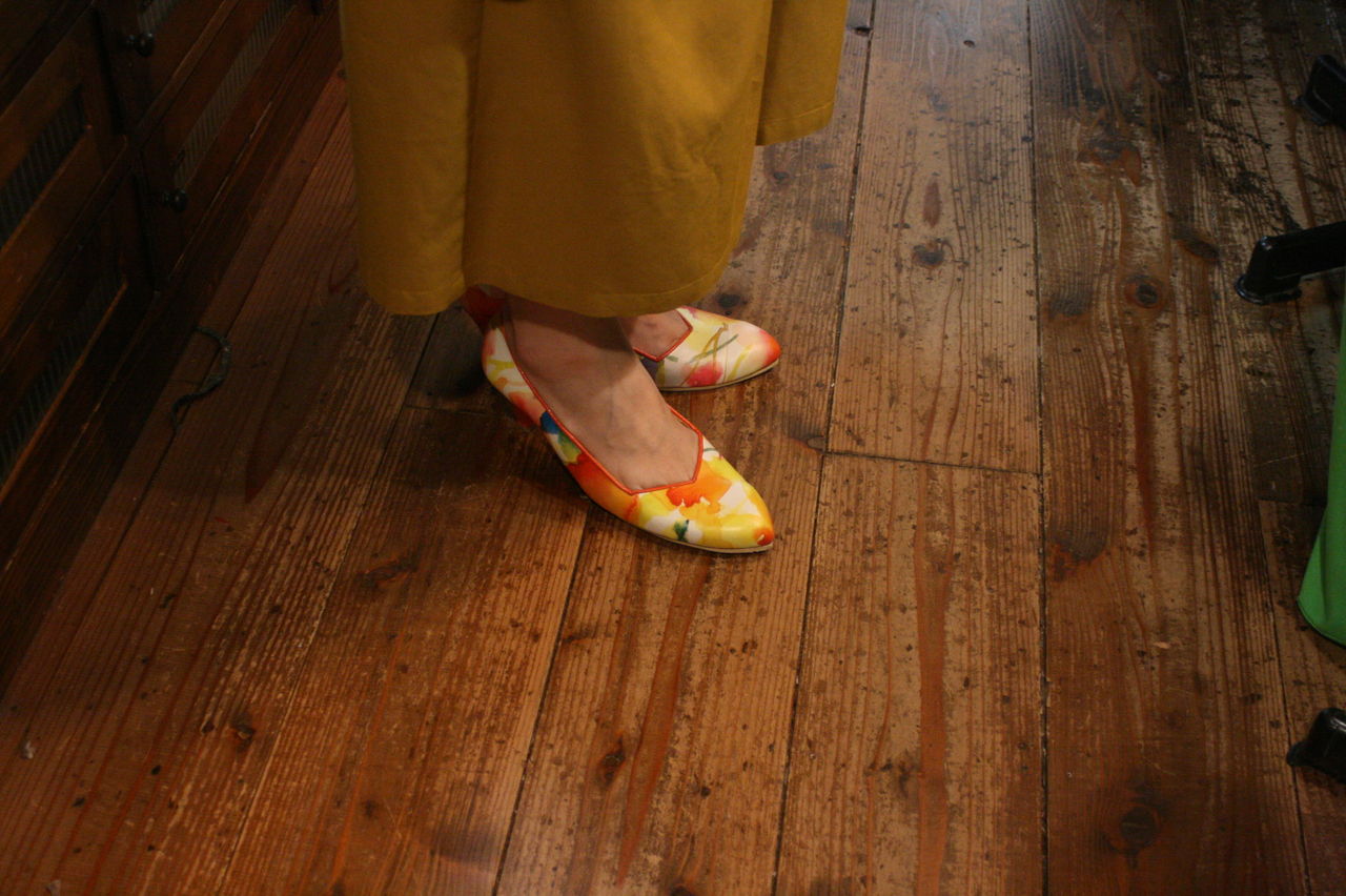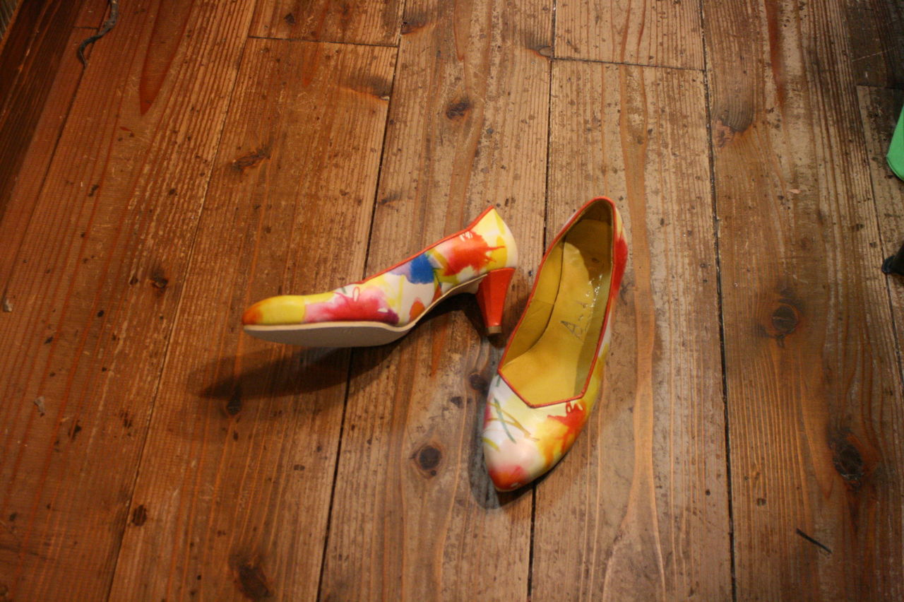 2019年11月18日 プリント革のパンプス、完成! Tさんの新作、自分で革屋さんに行って買ってきた、鮮やかなプリントが施された革で作ったパンプス。ヒールも自ら浅草で探してきた好みの物。ソールやヒールの色もプリントに合わせるなど抜かりなし。 タグ :#靴教室#東京#自由が丘#生徒作品#パンプス#ハイヒール#プリント革