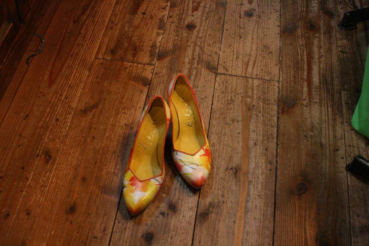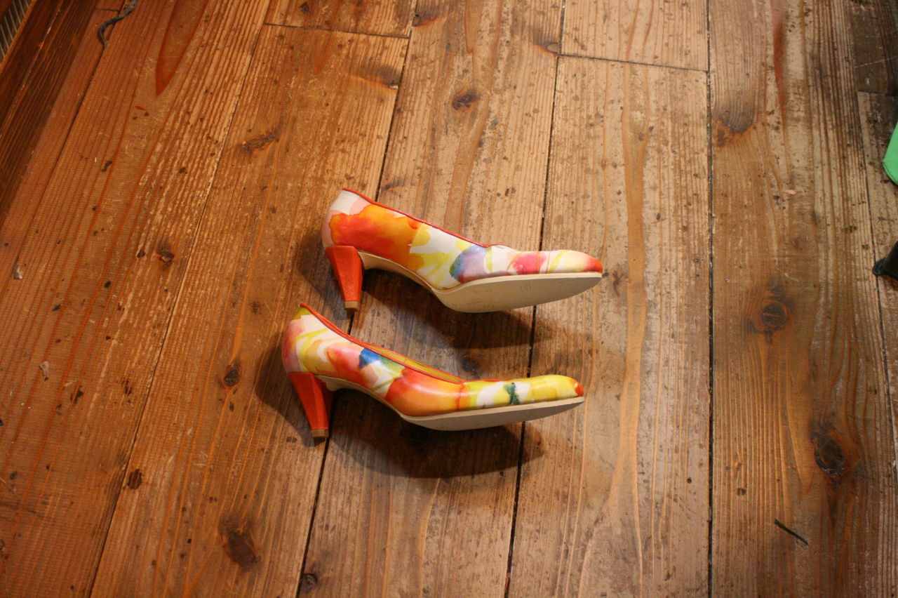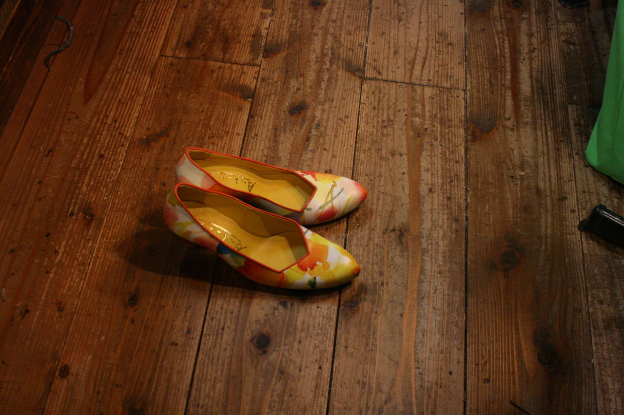 2019年11月18日 プリント革のパンプス、完成! Tさんの新作、自分で革屋さんに行って買ってきた、鮮やかなプリントが施された革で作ったパンプス。ヒールも自ら浅草で探してきた好みの物。ソールやヒールの色もプリントに合わせるなど抜かりなし。 タグ :#靴教室#東京#自由が丘#生徒作品#パンプス#ハイヒール#プリント革