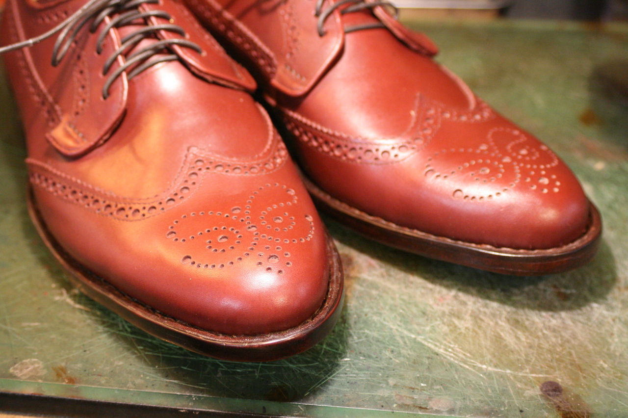 Uさんの新作、通常穴飾りにするところを全てスタッズに置き換えたフルブローグの完成です。