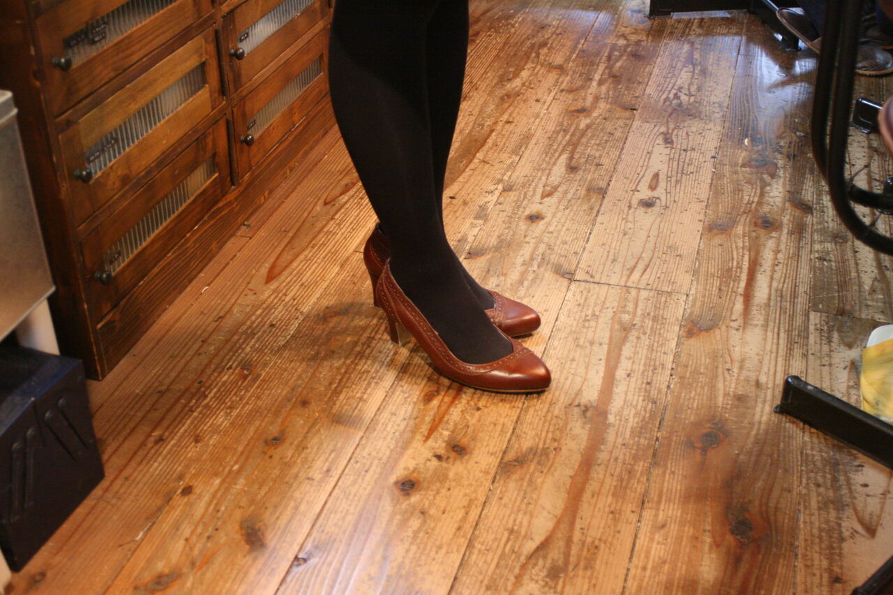 スタディーコース、Nさんの新作はブローグ(穴飾り)を施した内羽根。木型修正にも積極的で、時間はかかったものの、見事に足にフィットさせて完成です。