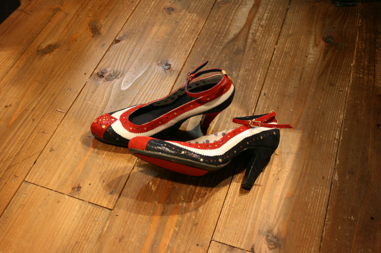 トリコロールカラーのアンクルストラップパンプス、完成!