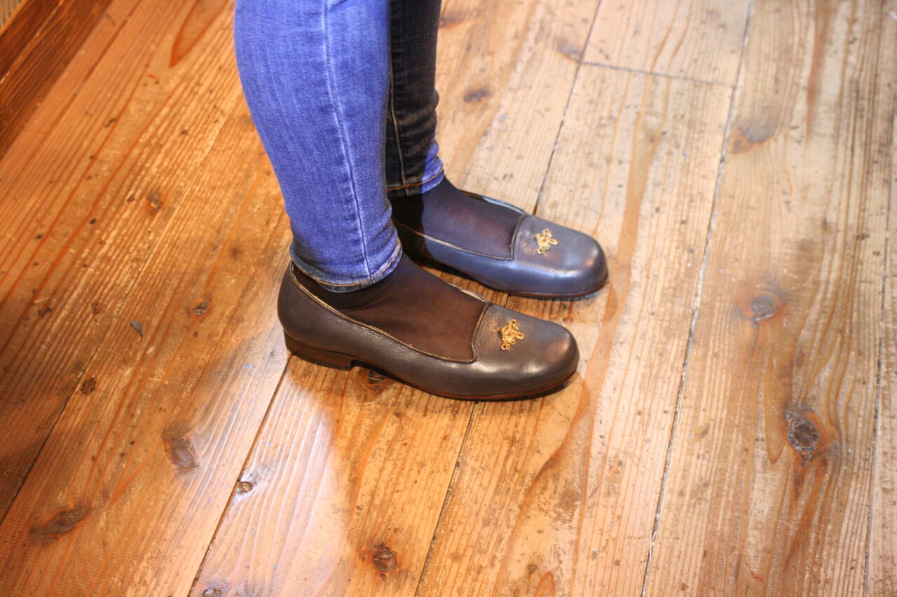 こちらに来られた時も市販の婦人靴が履けなくて、幅広の紳士靴を履かれてのご来店でした。